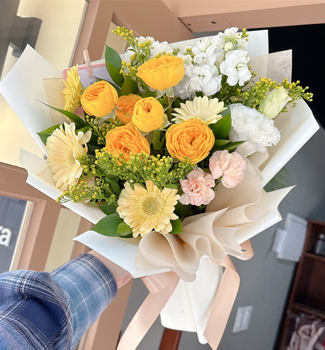 -수도권 지역 당일 주문, 2시간만에 배송완료. -꽃이 싱싱함. -색 조합+배경지 색이 예쁘고 잘 어우러지는 조합. 원래 주문한 꽃다발의 꽃이 5월에는 피지 않아서 제철 꽃으로 엮어주셨는데 원 주문보다 더 마음에 듭니다. 평소에는 꽃집 인스타그램으로 주문하는데 예약방식, 신선도, 할인 포함한 전체적인 가격면 등에서 훨씬 만족스러워서 자주 이용할 듯 합니다. 지역에 따라 꽃색상이나 포장이 달라져서 복블복일 수는 있겠으나 디자인이 촌스럽지 않아서 어르신 선물뿐만 아니라 제 또래 선물로도 좋았습니다.