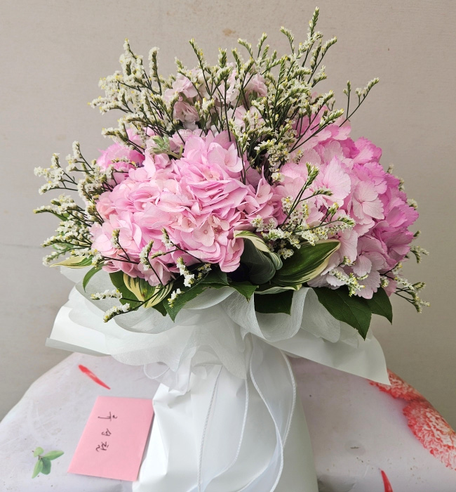 핑크 수국 시스루 다발