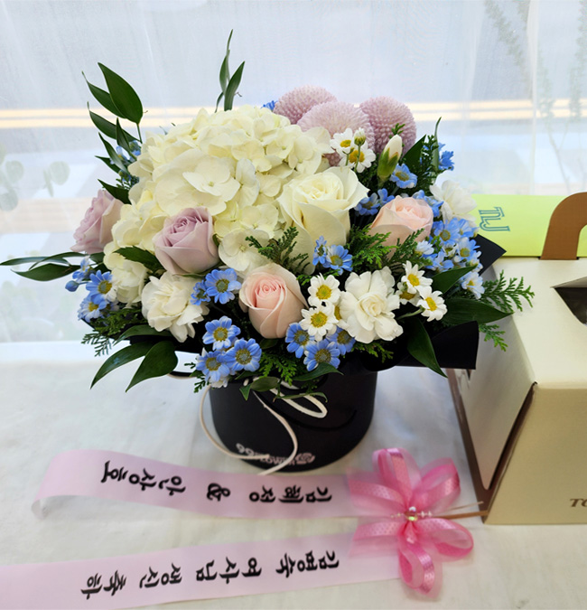 러블리 수국 꽃상자+케익