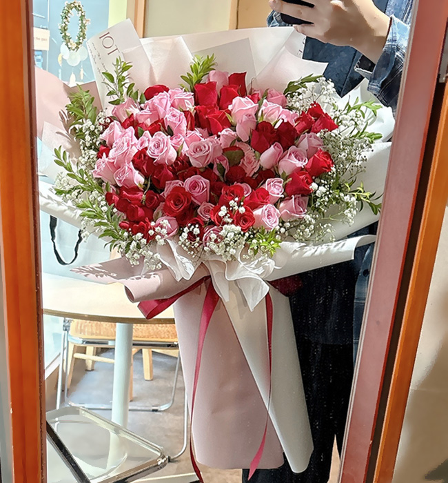 대형꽃다발 핑크장미100송이