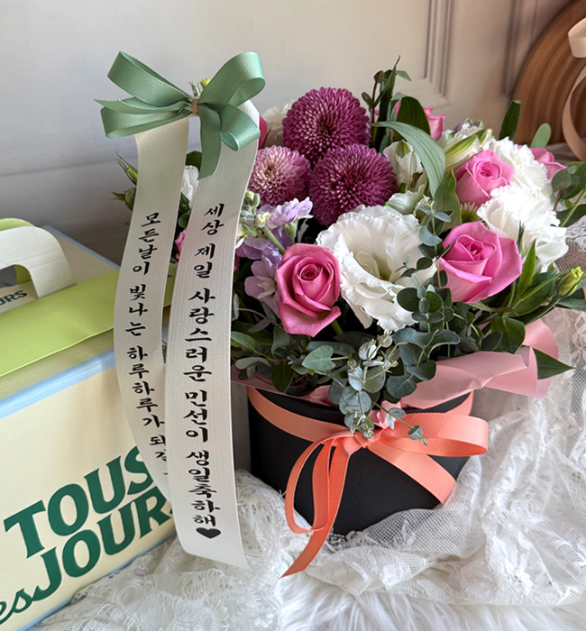 스무번째 맞이하는 조카의 생일을 특별하게 축하해주고 싶어서 보냈는데 너무도 좋아하니 제가 다 흐뭇하고 좋았습니다. 다만, 여대생이라 사진에서처럼 핑크색이었으면 했는데 다른색리본과 다른색 종이바구니여서 조금 아쉬웠어요~(이런 부분은 작은 요청사항으로 추가부분이 있었으면 좋겠습니다). 그럼에도 만족감은 최고!!! 담에 또 이용하겠습니다^^