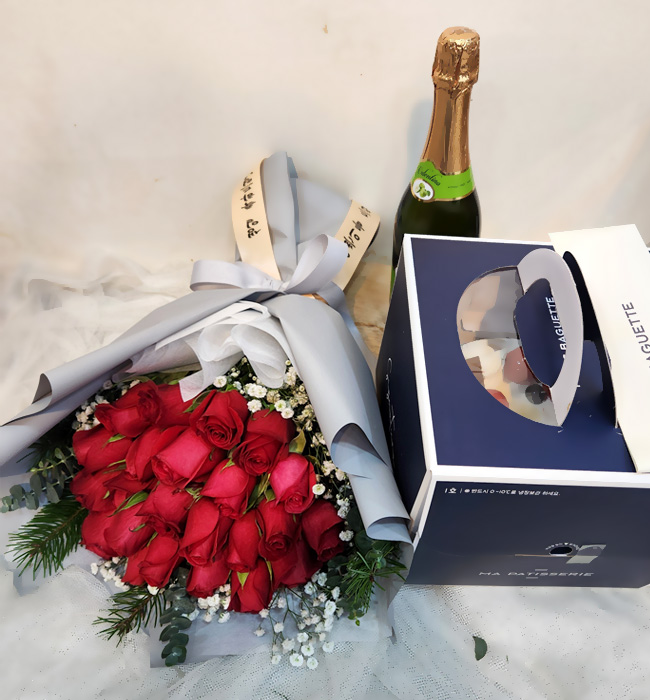 감동다발+케익+샴페인(무알콜)