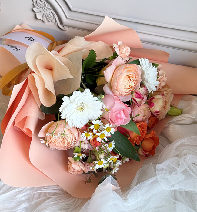 상담도 친절하고 배송도 원하는 시간에 받았습니다. 받으신분이 너무나 좋아하셨어요. 꽃다발 정면 사진을 못봤는데 이렇게 찍어주셔서 감사합니다. 꽃다발 화사하니 이쁘네요. 매우 만족스럽습니다. 다음에 또 이용하겠슥니다. 번창하세요.