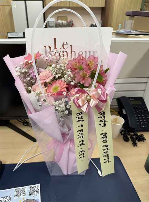소중한 후기 감사드립니다! 영전을 진심으로 축하드리며, 기쁜 자리에 저희 꽃다발이 좋은 선물이 되었기를 바랍니다. 늘 믿고 이용해 주셔서 감사하며, 앞으로도 정확하고 정성스러운 배송으로 보답하겠습니다. 고객님의 소중한 마음이 잘 전달되어 저희도 매우 기쁩니다. 오늘도 행복 가득한 하루 보내시길 바랍니다!