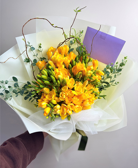 노랑 튤립 다발