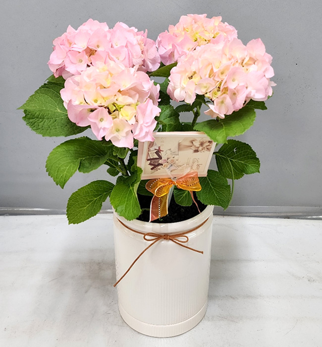 화사한 핑크 수국화분