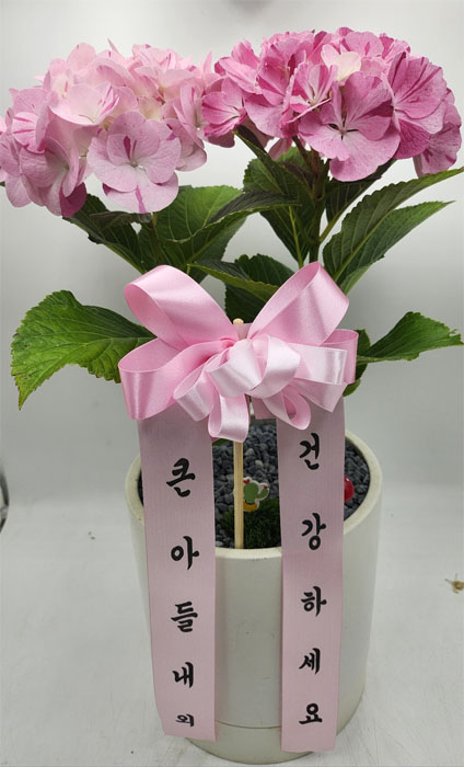 화사한 핑크 수국화분