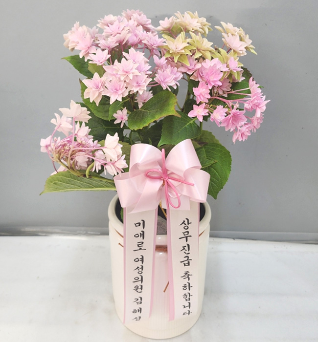 화사한 핑크 수국화분