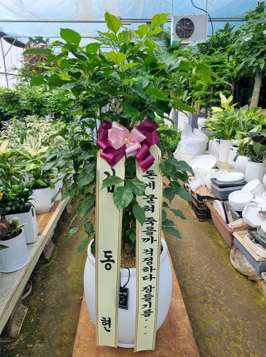 소중한 후기 감사합니다. 화분의 잎이 건강하고 반짝여서 만족하셨다니 정말 기쁩니다. 정성스레 준비한 글씨체까지 마음에 들어 해 주셔서 보람을 느낍니다. "돈에 묻혀 잠들길 바란다"는 재치 있는 메시지처럼, 선물을 받으신 분의 앞날에 큰 행운과 번창이 가득하기를 진심으로 기원합니다. 다시 한번 이용해 주셔서 감사합니다.