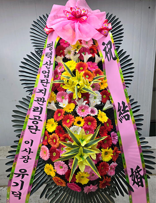 예식 시간 맞춰 잘 배송 되었네요 화환도 이쁘게 잘 만들어졌어요 수고하셨습니다