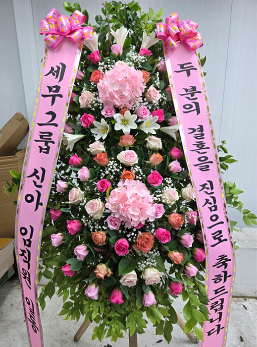 핑크 2단 수국화환