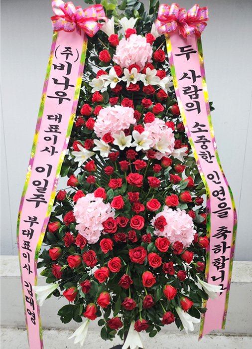 핑크수국 축하화환 3단