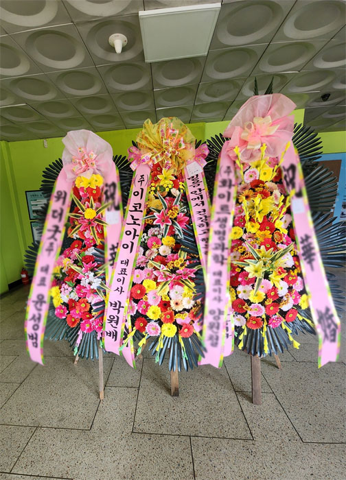 시간 촉박하게 주문했는데 잘 해주셔서 너무 고마웠습니다. 비슷한 화환같지만 가운데 포인트가 핑크여서 더 화려해보였습니다. 수고에 거듭 감사드립니다. 다음에 화환 주문할땐 잊지않고 날짜 여유있게. 주문하겠습니다