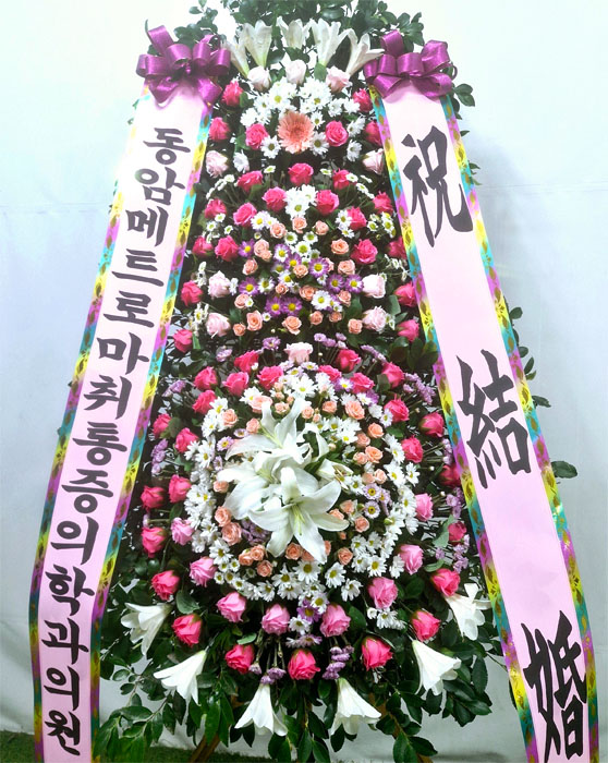 핑크장미 축하화환 3단