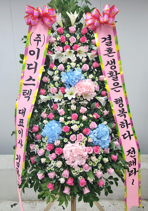 세련된 수국 축하화환 3단