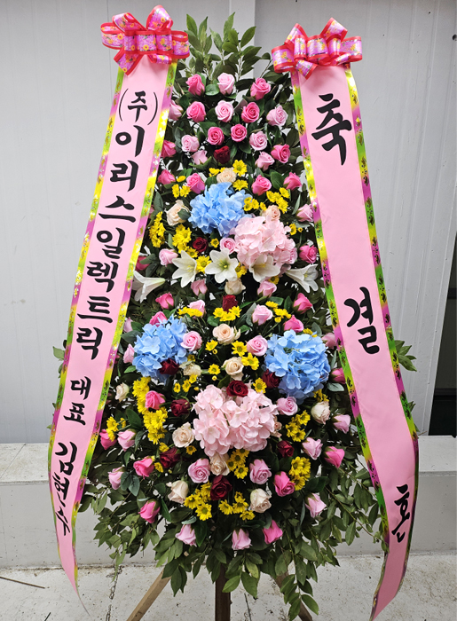 세련된 수국 축하화환 3단