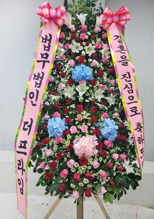 세련된 수국 축하화환 3단