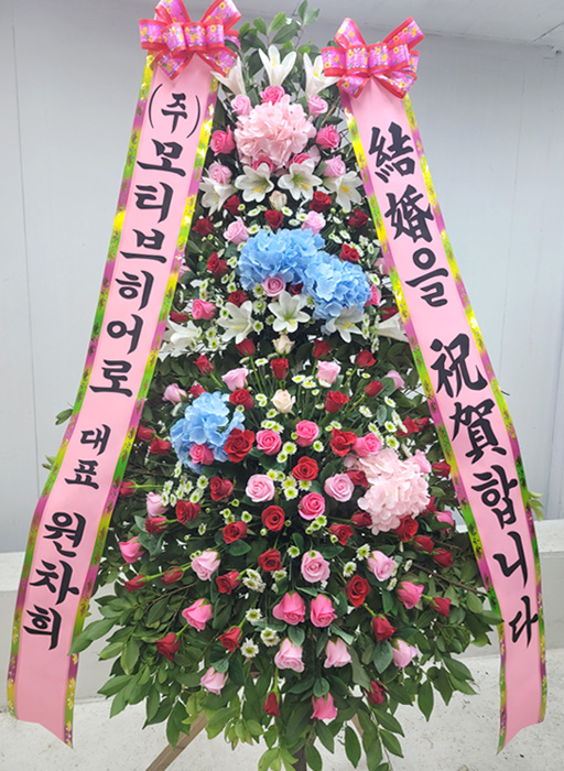 고급 수국 축하화환 3단