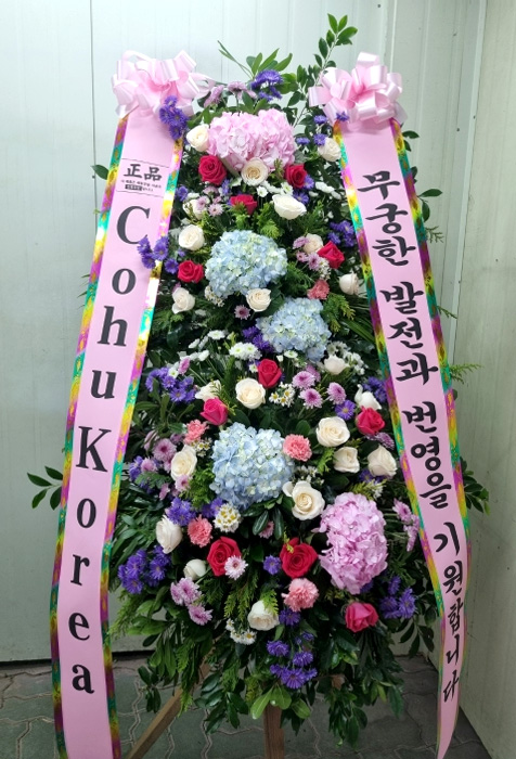 고급 수국 축하화환 3단