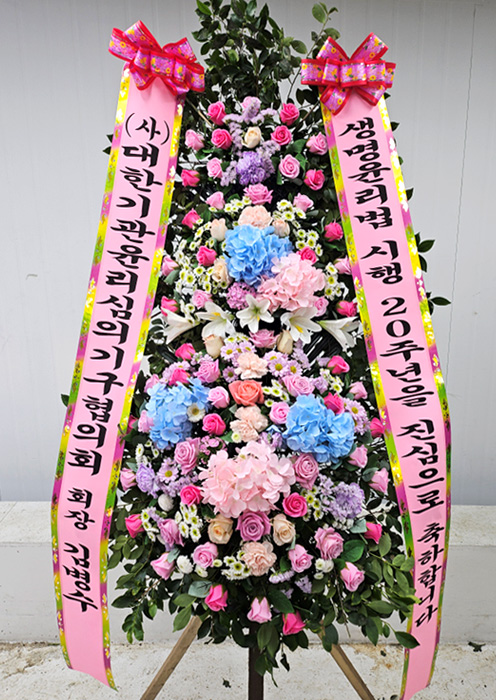 세련된 수국 축하화환 3단