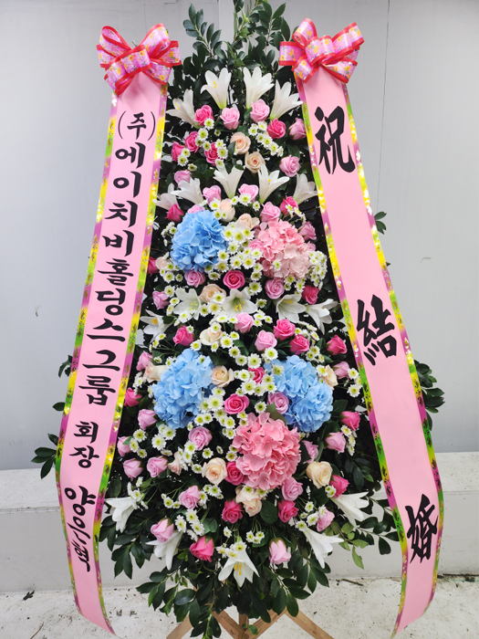 세련된 수국 축하화환 3단