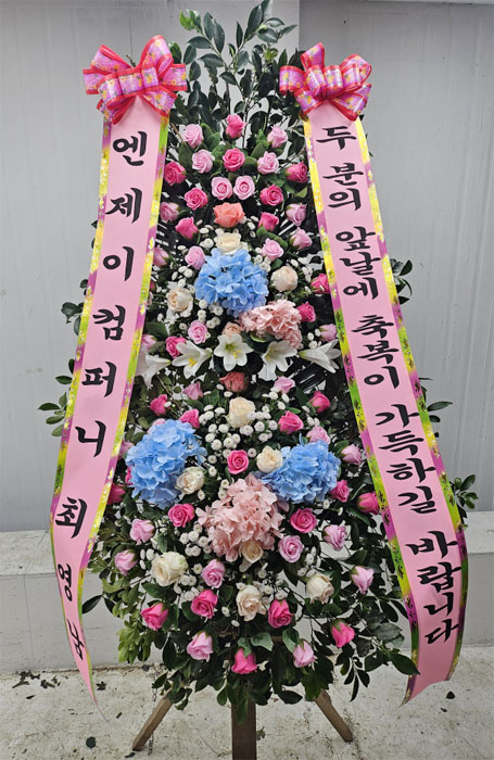 세련된 수국 축하화환 3단