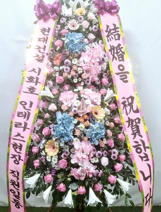 세련된 수국 축하화환 3단