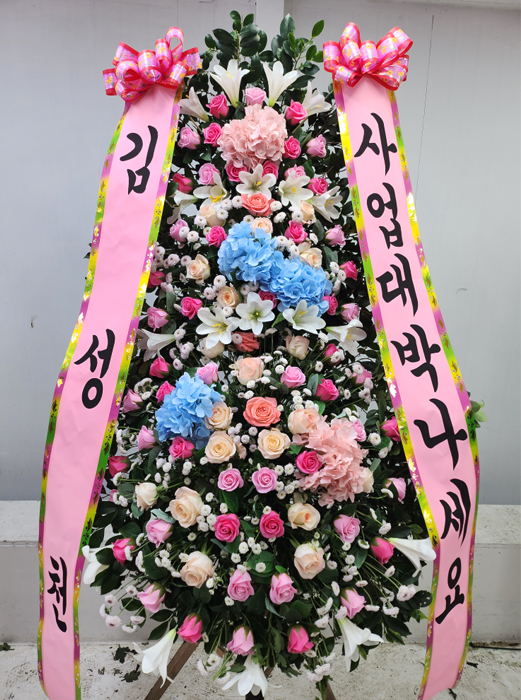 고급 수국 축하화환 3단