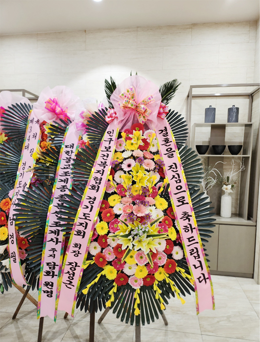 축하화환 3단(D)소재는 도시루잎