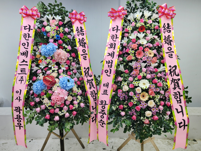 세련된 수국 축하화환 3단