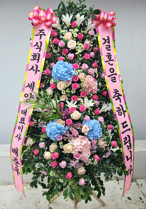 세련된 수국 축하화환 3단