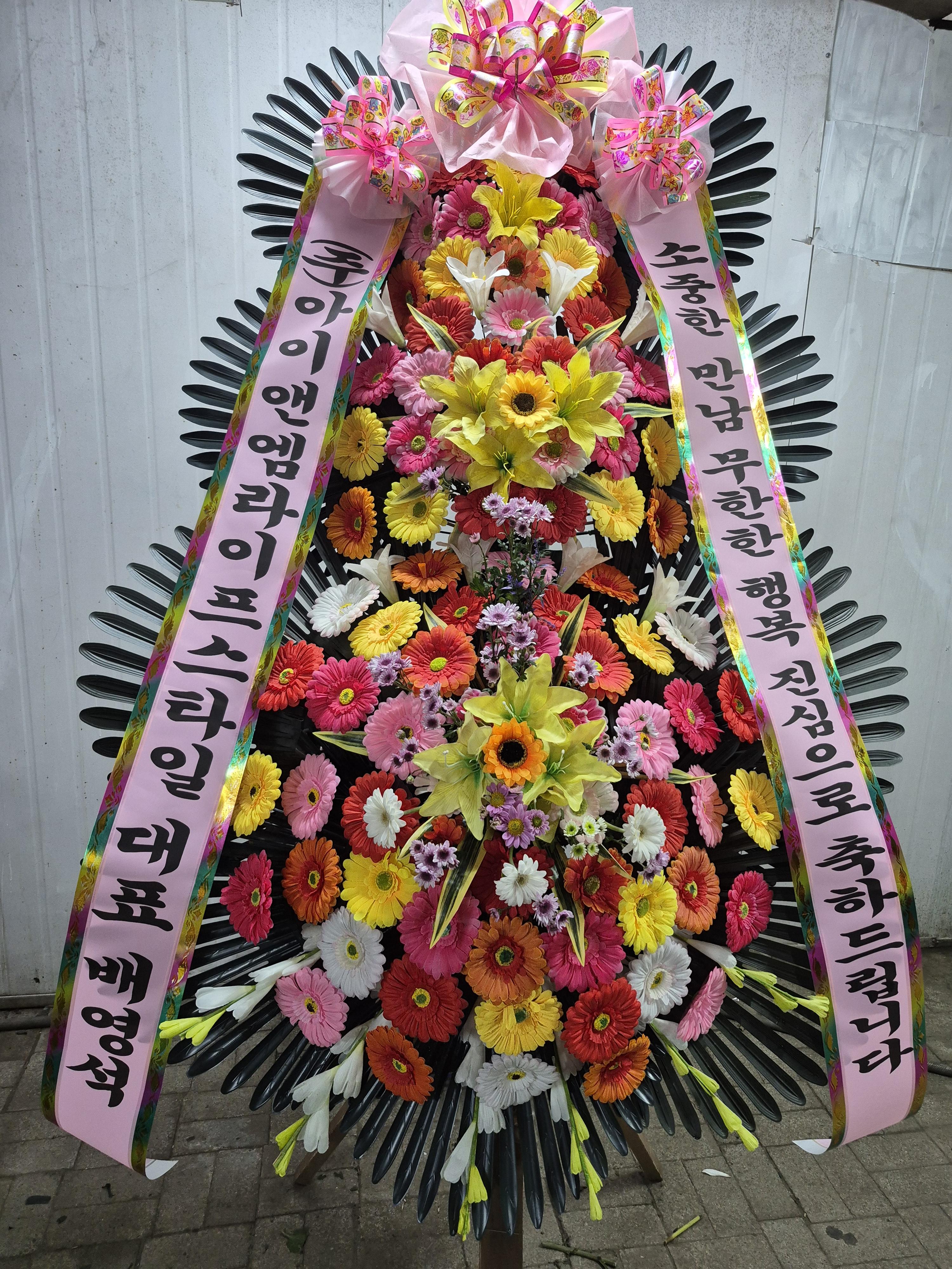 화환이 풍성하고 예쁘네요 그리고 요청드린 시간에 정확히 배송해주셔서 감사합니다