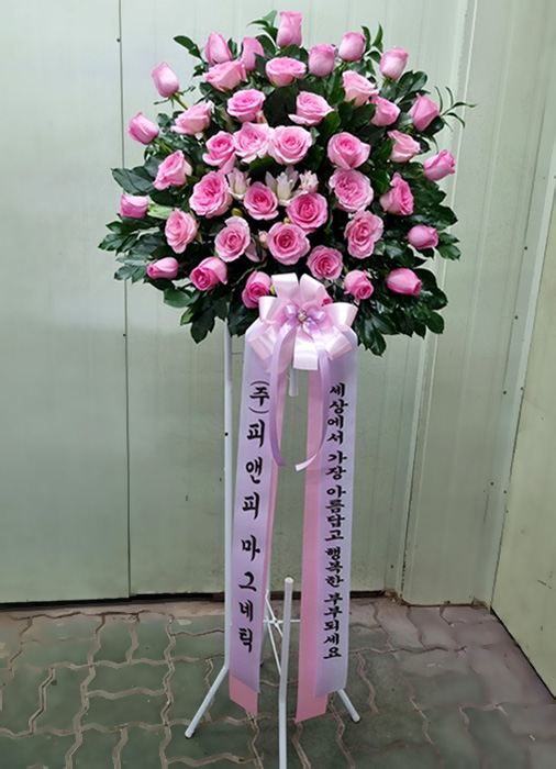 핑크장미 신개념 디자인 화환 1단 (높이 160cm 내외)