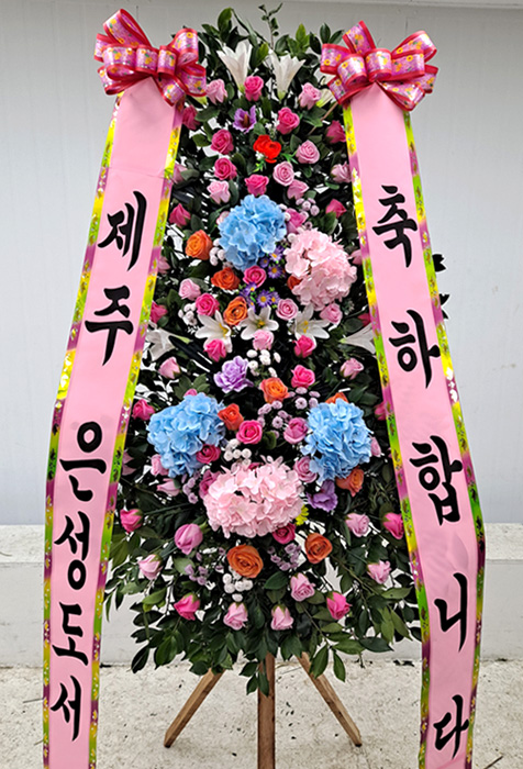 세련된 수국 축하화환 3단