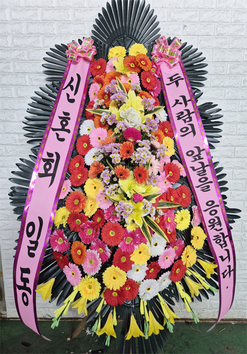 저희 상품을 믿고 이용해 주셔서 진심으로 감사드립니다. 싱싱하고 예쁜 꽃으로 정성껏 준비한 화환이 마음에 드셨다니 큰 보람을 느낍니다. 두 사람의 앞날을 응원하는 소중한 마음이 받는 분께도 잘 전달되었기를 바랍니다. 앞으로도 변함없는 정성으로 최선을 다하겠습니다. 행복 가득한 하루 보내세요!
