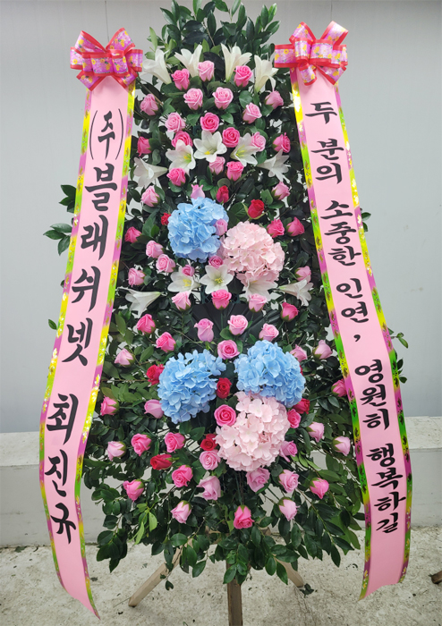 세련된 수국 축하화환 3단