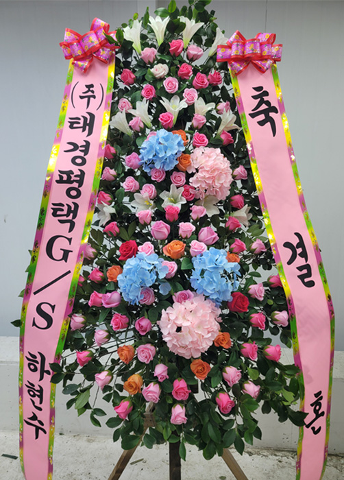 소중한 분의 결혼을 진심으로 축하드립니다! 정성껏 준비한 화환이 기쁜 자리를 더욱 빛내주었기를 바랍니다. 보내시는 분의 따뜻한 축하의 마음이 받는 분께도 잘 전달되었기를 바라며, 두 분의 앞날에 늘 행복과 사랑이 가득하시길 기원하겠습니다. 믿고 이용해 주셔서 감사합니다. 행복한 하루 보내세요!