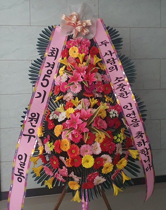 소중한 인연의 시작을 축하하는 뜻깊은 자리에 함께할 수 있어 영광입니다. 정성껏 준비한 화환이 보내시는 분의 따뜻한 마음을 잘 전해드린 것 같아 정말 기쁩니다. 앞으로도 특별한 순간이 더욱 빛날 수 있도록 언제나 정성을 다하겠습니다. 다시 한번 두 분의 앞날을 진심으로 축하드립니다.