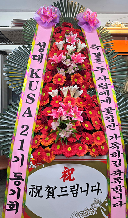 소중한 날, 정성스러운 마음을 담은 축하화환을 믿고 맡겨주셔서 진심으로 감사드립니다. 두 분의 새로운 시작을 축하하며, 리본에 담긴 메시지처럼 앞으로 걷는 모든 앞날에 꽃길만 가득하시길 기원하겠습니다. 고객님의 따뜻한 후기에 큰 힘을 얻으며, 앞으로도 최고의 상품과 서비스로 보답하겠습니다. 늘 행복하세요!