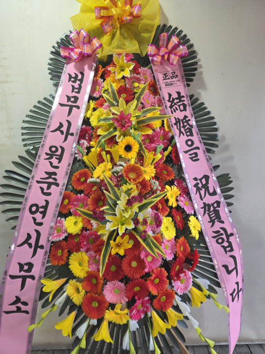 소중한 후기 남겨주셔서 감사합니다. 화환의 리본 문구와 시각적인 부분에 만족하셨다니 정말 기쁩니다. 정성을 다해 준비한 저희의 진심이 잘 전달된 것 같아 큰 보람을 느낍니다. 결혼을 진심으로 축하드리며, 소중한 분의 앞날에 늘 행복과 기쁨이 가득하시길 기원하겠습니다. 앞으로도 늘 정성을 다하는 서비스로 보답하겠습니다.