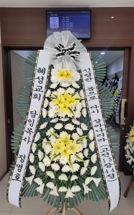 삼가 고인의 명복을 빌며 깊은 애도를 표합니다. 슬픔의 자리에 고객님의 소중한 마음이 잘 전달되었기를 바랍니다. 정성을 다해 준비한 저희 화환이 유가족분들께 조금이나마 위로가 되었기를 진심으로 기원합니다. 믿고 이용해 주시고 소중한 후기까지 남겨 주셔서 감사합니다. 늘 진심을 다하는 서비스로 보답하겠습니다.