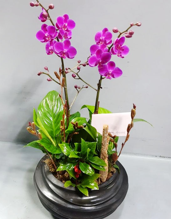 책상 위 화분 만천홍