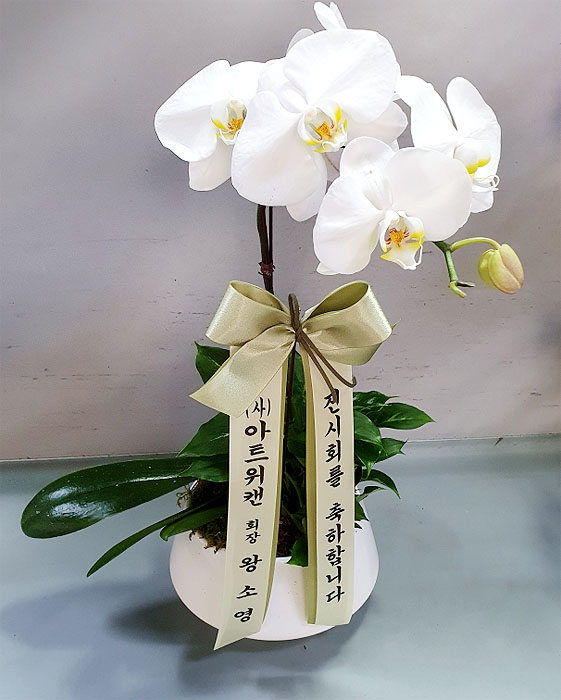 담백한 백색 호접란