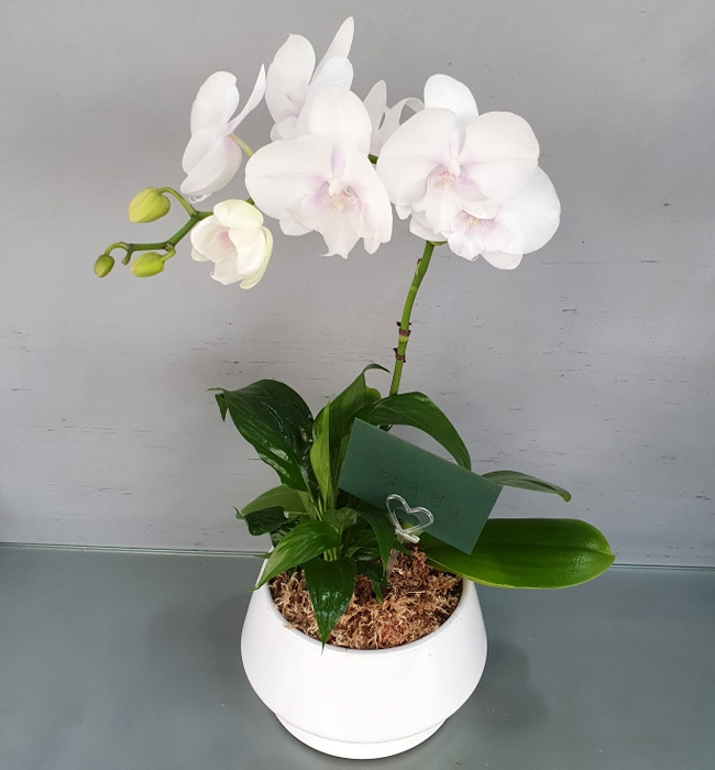 담백한 백색 호접란