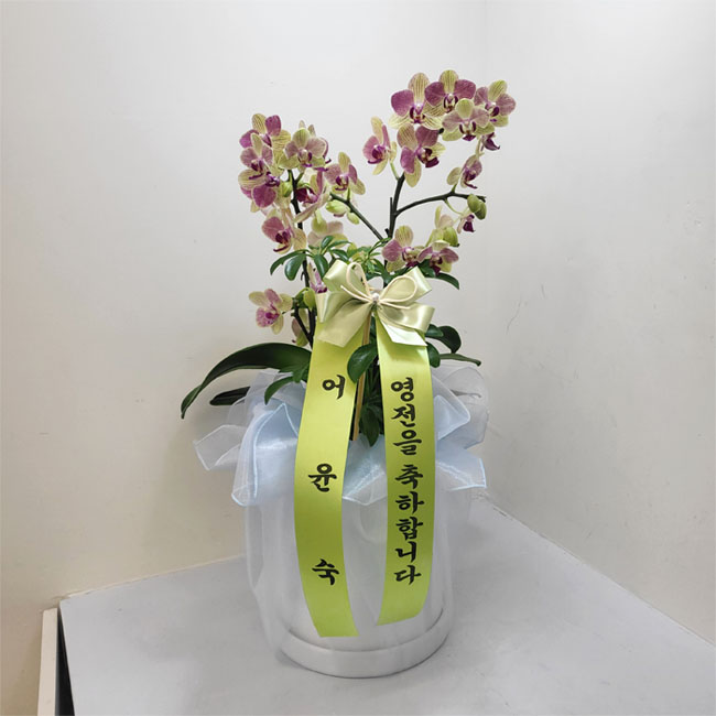 활짝 핀 꽃이 아주 예쁘네요. 개인적으로 화분 포장 보자기 색상은 좀더 화사하거나 청색계열이었으면 더욱 좋아 보였을거 같아요.