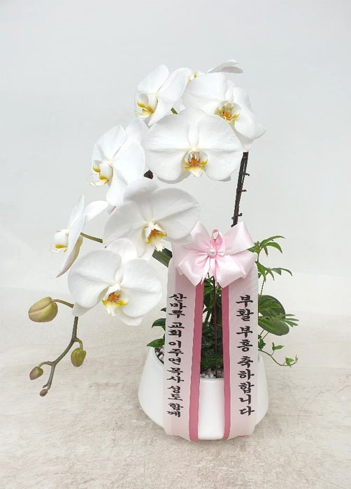 담백한 백색 호접란