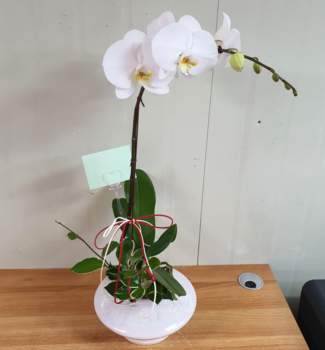 담백한 백색 호접란