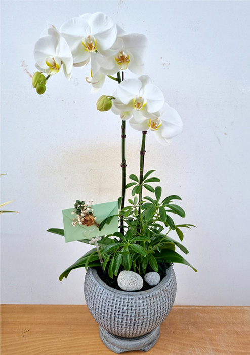 담백한 백색 호접란