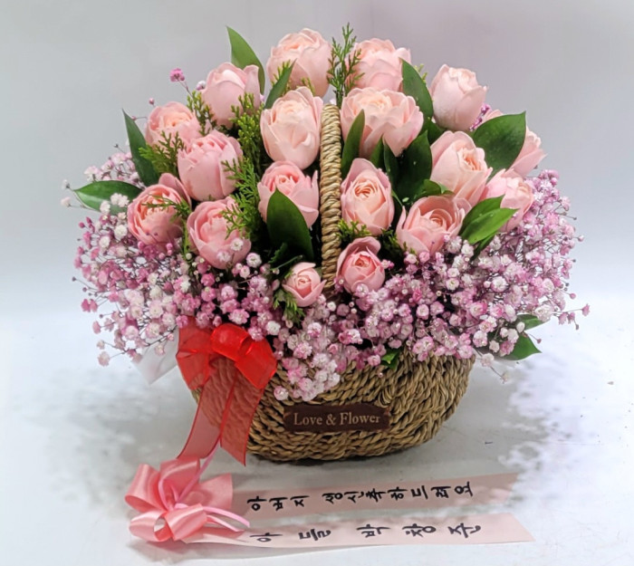 TV소개된 그 칼라안개와 핑크장미 꽃바구니