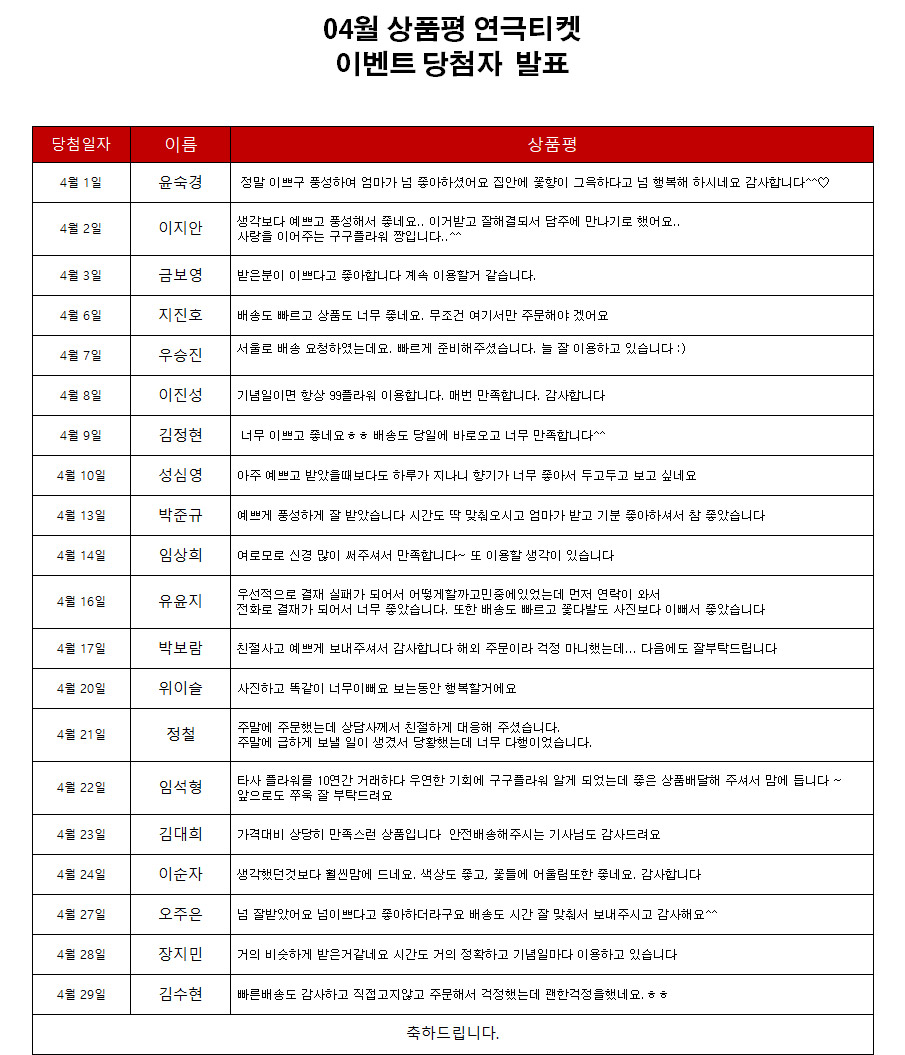 title : 2020년 04월 상품평 연극티켓 이벤트 [당첨자발표]
